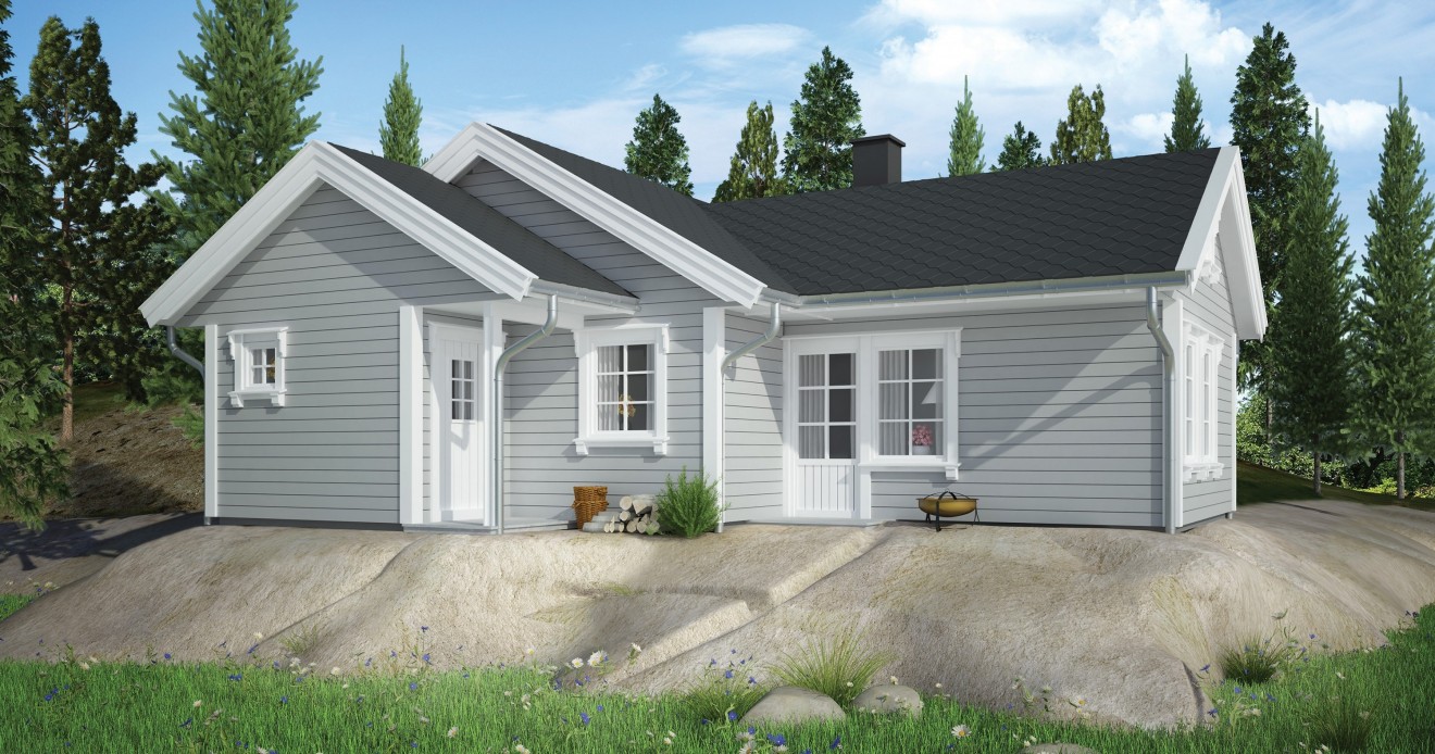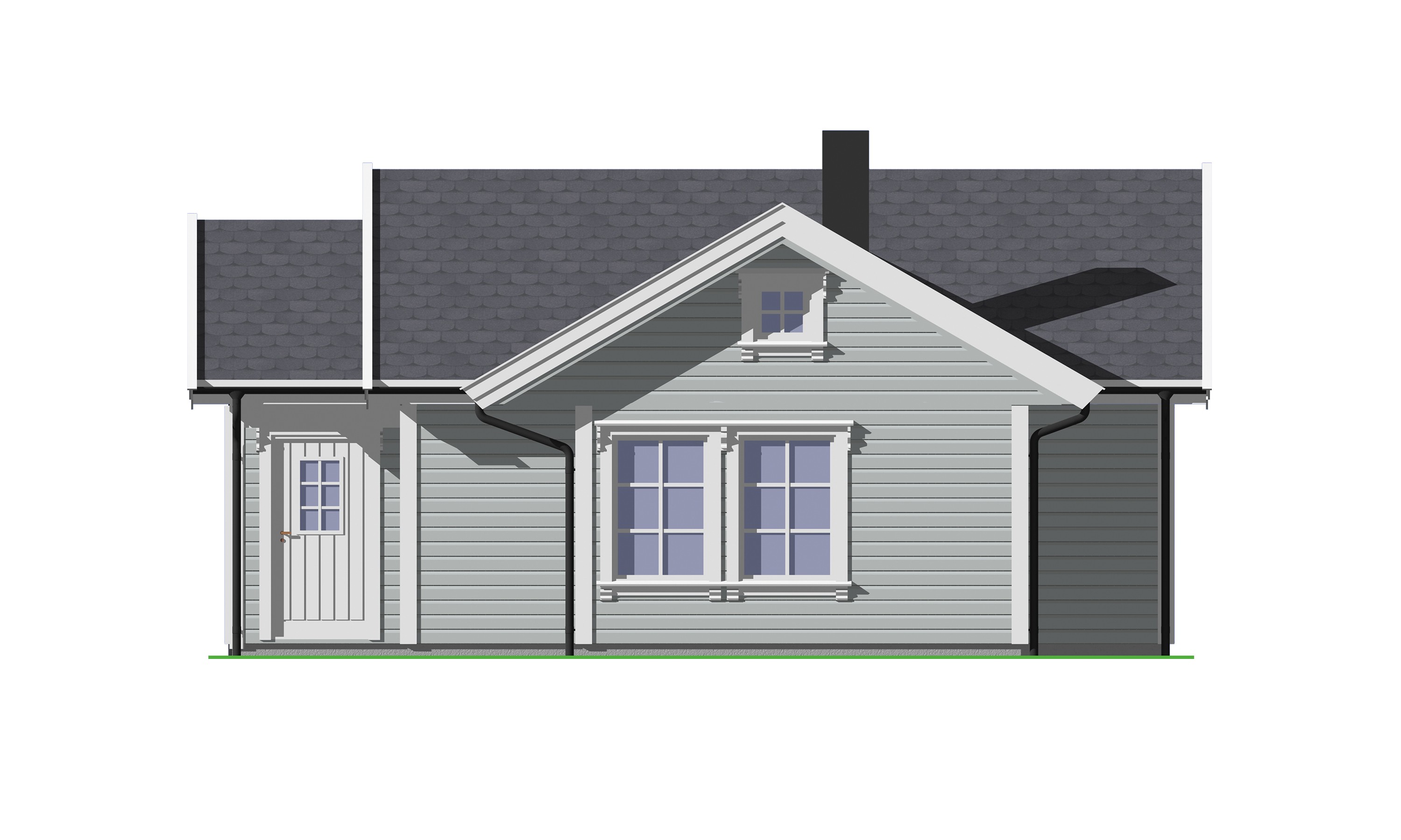 Liten, praktisk hytte med god planløsning. Passer godt både ved sjøen og på fjellet. Hytten har 3 soverom og en hems over stuen. Ideell hytte til småbarnsfamilier.