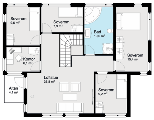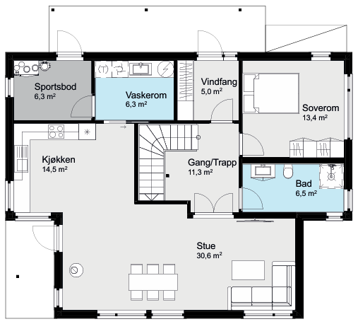 Midsund er et hjem med god flyt, mange muligheter og rom nok til å vokse i – både nå og i fremtiden.