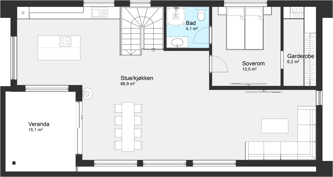 I første etasje finner du tre av soverommene, bad, vaskerom og en koselig kjellerstue. Hovedetasjen byr på en åpen stue- og kjøkkenløsning med store vindusflater som slipper inn rikelig med dagslys. Her ligger også hovedsoverommet, med walk-in garderobe og eget bad.