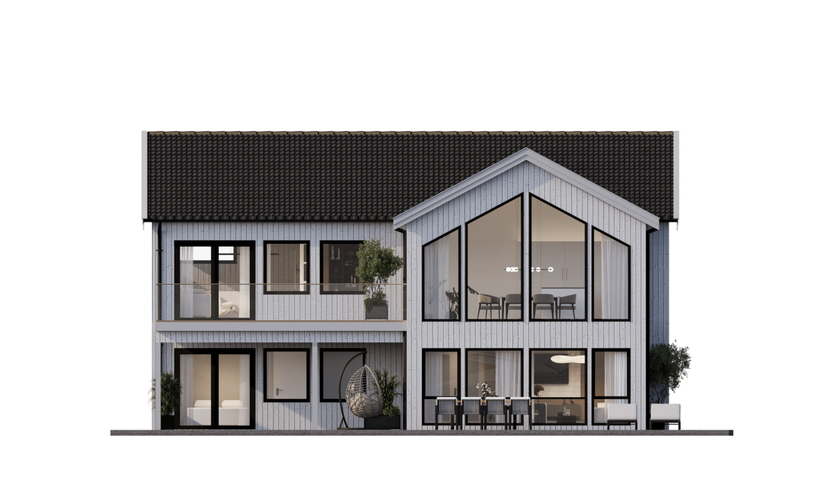 Huset er på hele 210 m², og byr blant annet på hele fire soverom, stor åpen stue- og kjøkkenløsning i tillegg til en ekstra stue. Alnes er perfekt for deg som vil samle venner og familie over en herlig middag, enten i det åpne sentrum av hjemmet, eller på altanen.