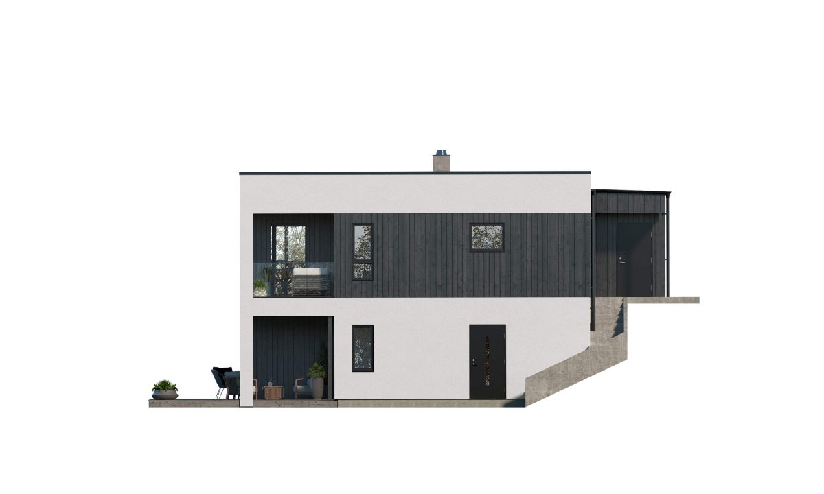 Sotra er en moderne bolig som kombinerer stil og funksjonalitet. Perfekt for skrå tomter, tilbyr den en fullverdig utleiedel med stue/kjøkken, soverom, bad og sportsbod – ideelt for ekstra inntekt eller til ungdom i etableringsfasen.