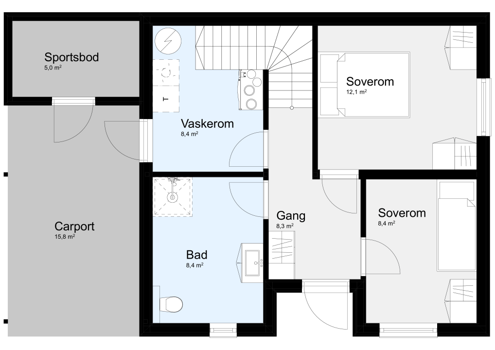 Ask er en kompakt og smart bolig med tydelig inspirasjon fra Casa – bare i et mindre format. Her får du en moderne funkisbolig med åpen stue- og kjøkkenløsning, praktisk vaskerom med egen utgang, gode oppbevaringsløsninger og tre soverom.